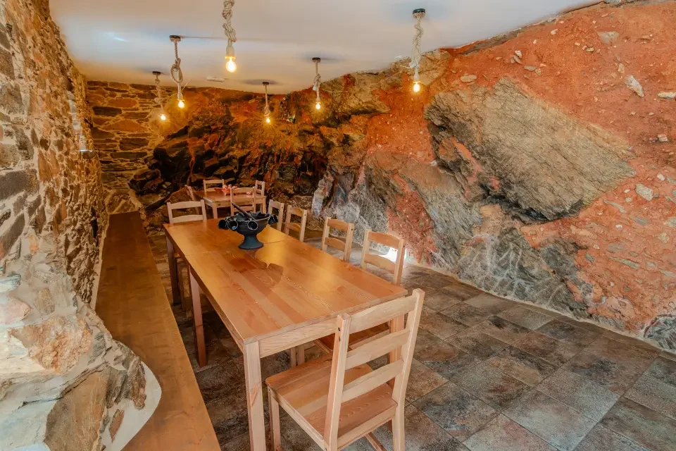 Eco dos Teixos es mucho más que un alojamiento común. Hemos diseñado un espacio con una estética tradicional muy cuidada, que cuenta con espacios abiertos, jardín con terraza, dos salas de actividades y reuniones con chimenea, y un comedor en la planta baja que se asemeja a una cueva.